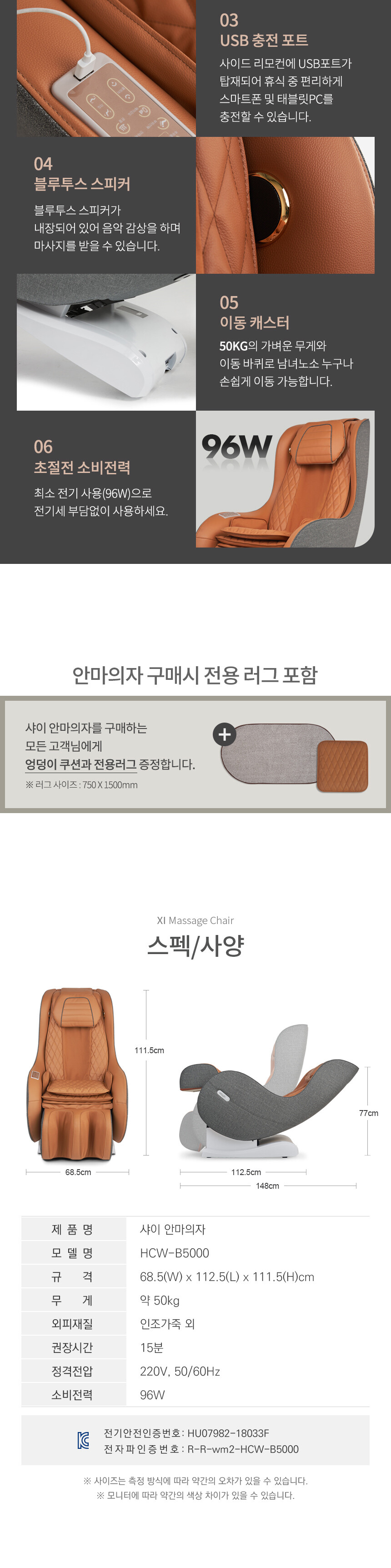 웰모아 샤이 HCW-B5000 고급형 소형 미니 컴팩트 안마의자