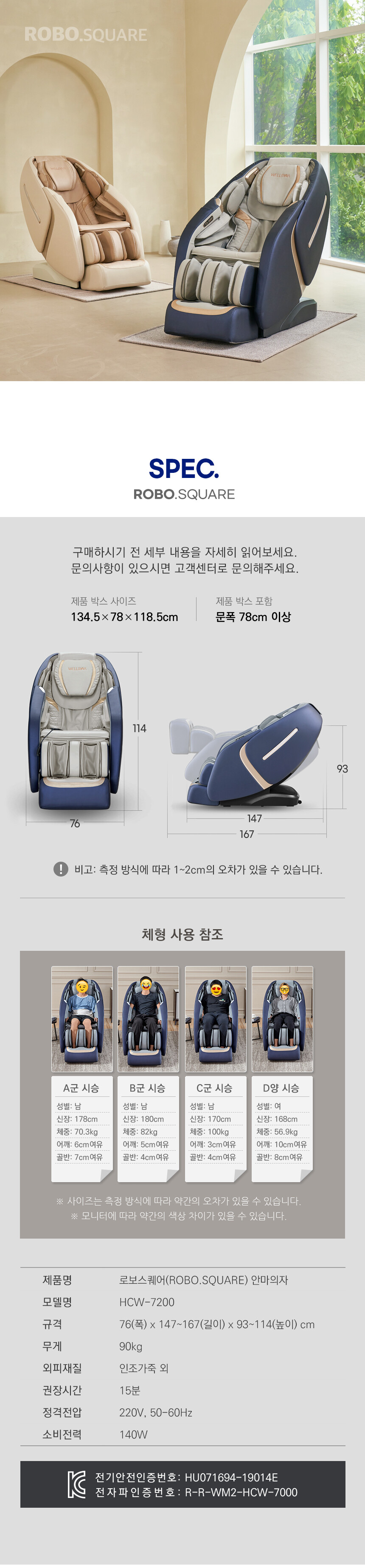 웰모아 로보스퀘어 AI 음성인식 HCW-7200 안마의자