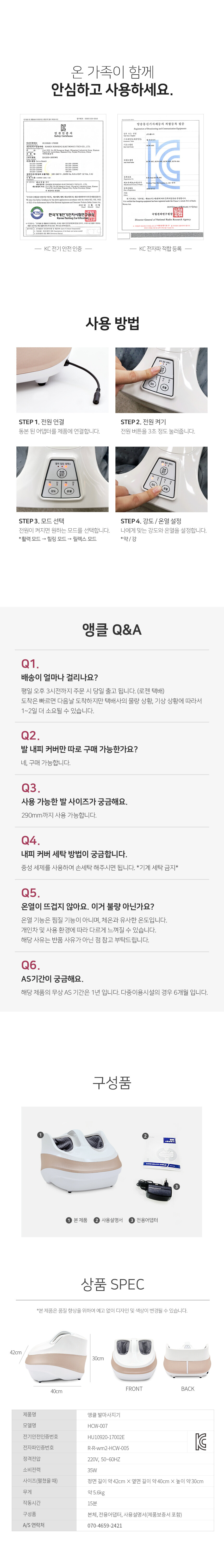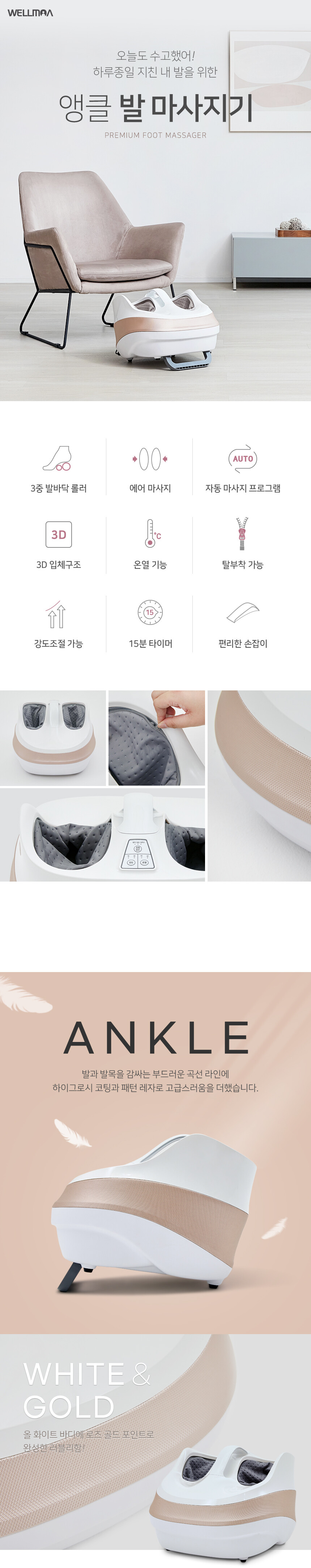 웰모아 앵클 HCW-007 - 에어 롤러 온열 발 마사지기